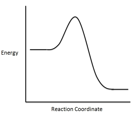 In the chemical reaction energy profile shown below, where are the reactants and the products located?