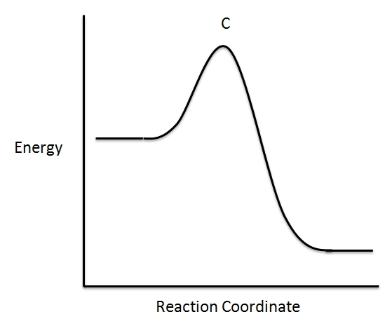In the chemical reaction energy profile below, what portion of the reaction is located at point C?