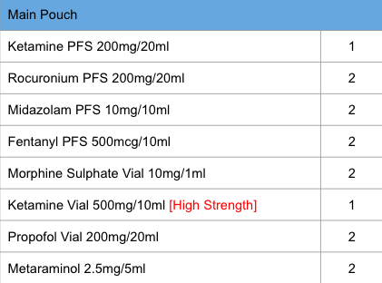 Apart from airway adjuncts, what else is in the airway adjuncts pouch and how many?