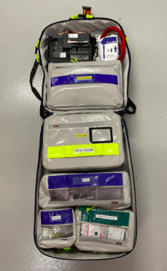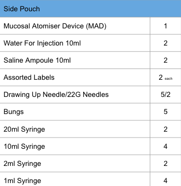 Apart from the airway adjuncts, what else is in the outside bottom pouch of Big Blue? (5)