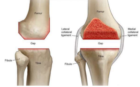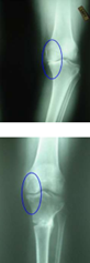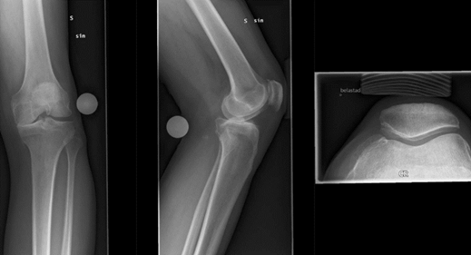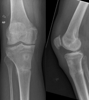 Röntgen ser helt okej ut men finns problem där tibia och femur möts på medialsidan