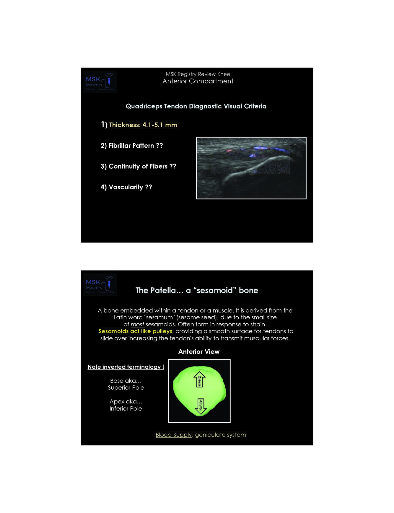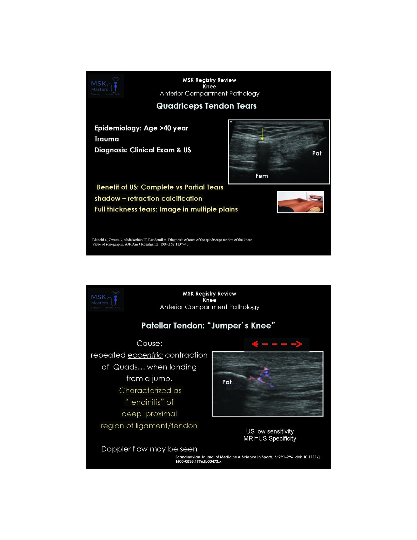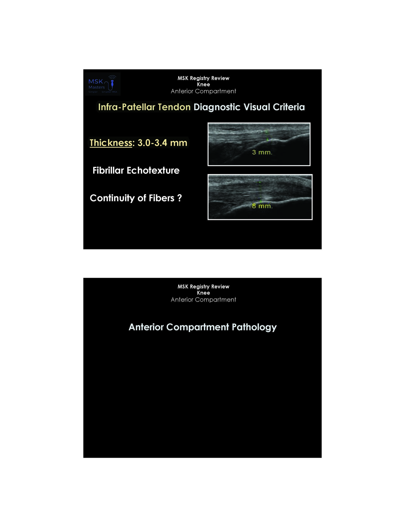 What is the infr patellar ttendon diagnositic visual criteria