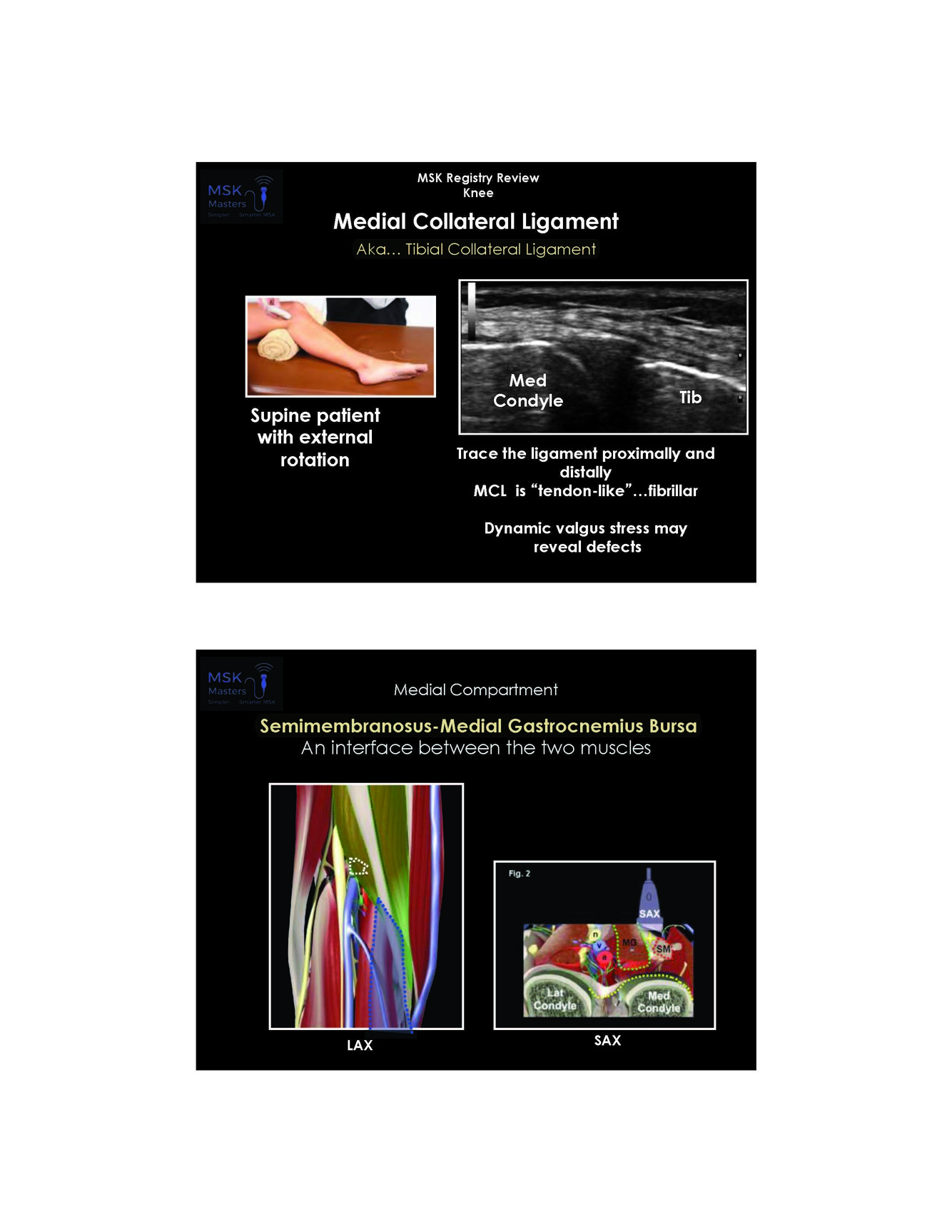 Semimembranosus and Medial gastroc bursa and interface between the two mucscles