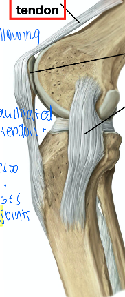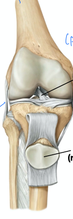extension is facilitated by the ____ tendon and patella that articulates with the ___.