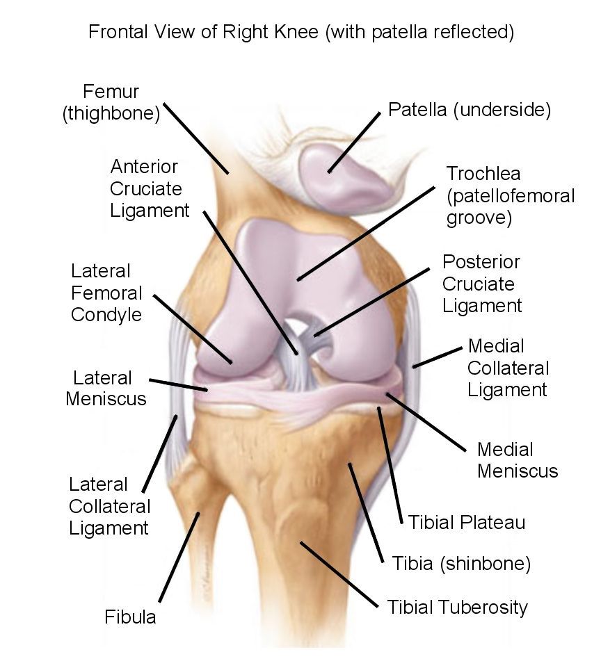medial collateral ligament: medial epicondyle of femur to medial condyle of tibia