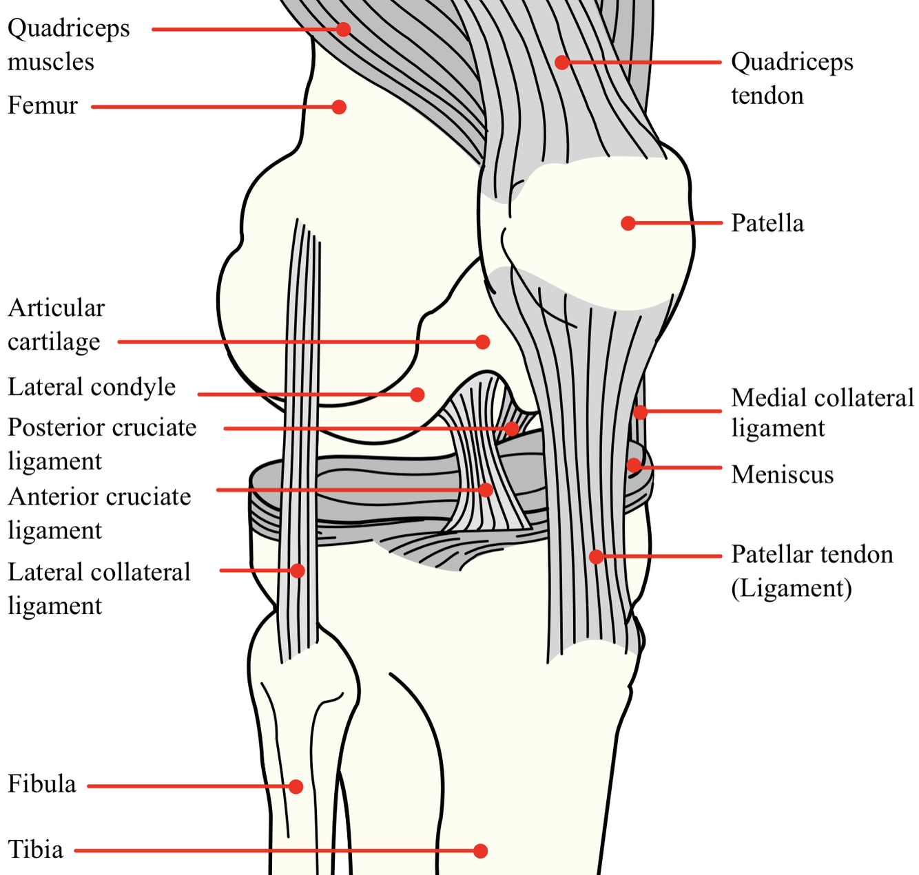 Lateral collateral ligament: lateral epicondyle of femur to head of fibula