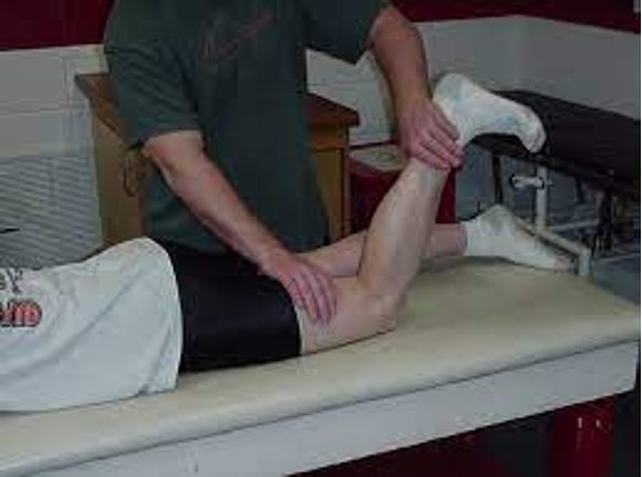 Grab foot at calcaneus and rotate the heel causing internal and then external rotation