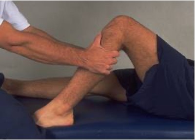 Grasp the proximal tibia, with thumbs on the anterior femoral condyles and pull with fingers under the knee