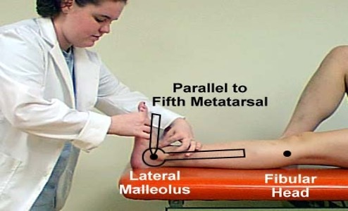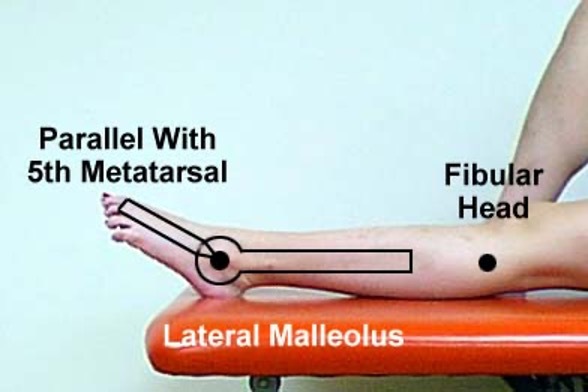Fulcrum=anterior aspect of ankle, midway between malleolus