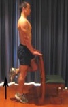 Subject in semi sitting, with hip at 45 degrees, knee at 90 over edge of table