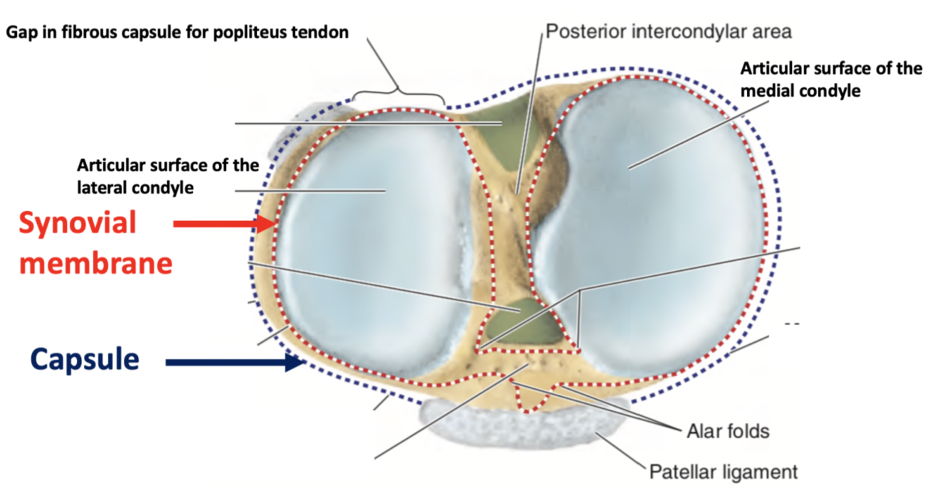 Th synovial membrane of the jpint cpasule reflects anteriroly into the intercondylar area , WHY?