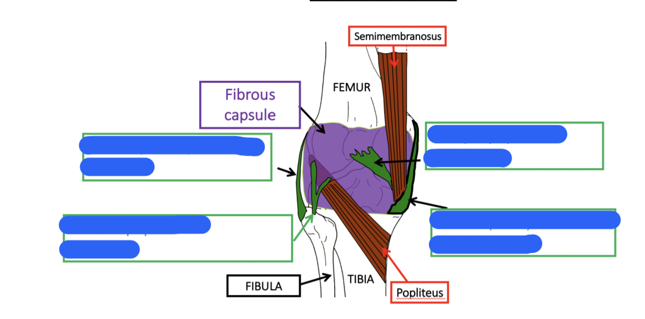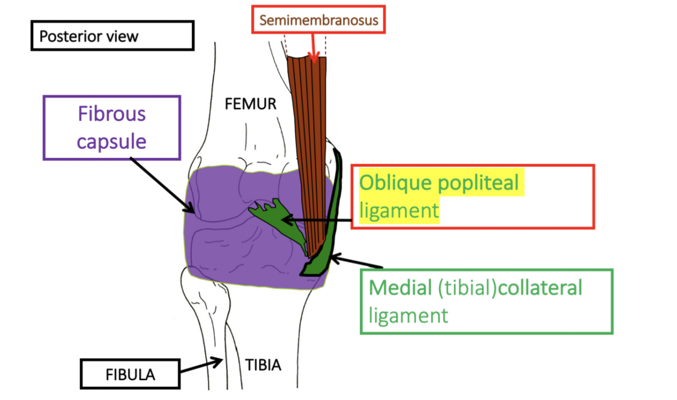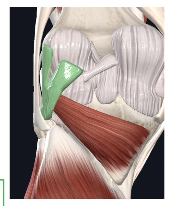 passes superomediall over the tendon of popliteus then becomes continus with the fibrous capsule