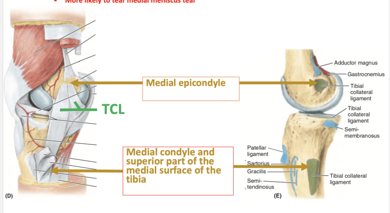 the medial mensicus is thus less mobile than the lateral due to the attachemnt to the TCL- more likely to tear medial mensicus
