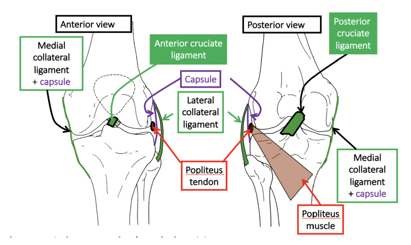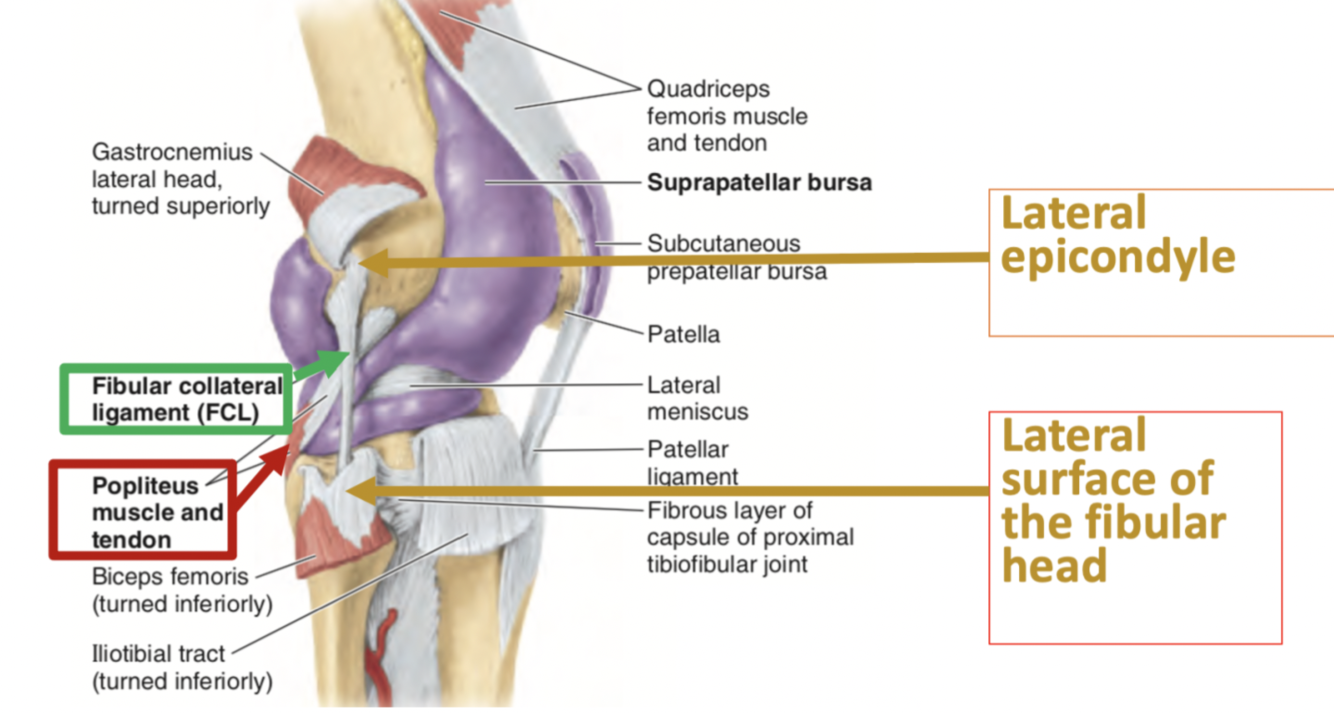 Popliteus tendon attachment to the lateralfemur (posteriroly)
