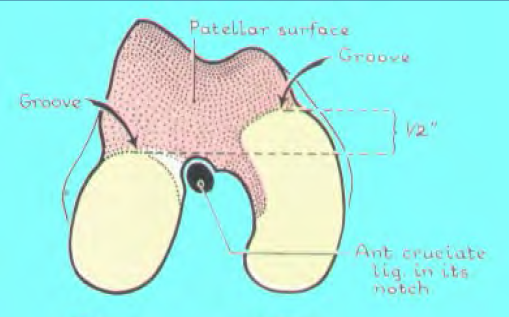 PCL: prevents tibia from being displaced posteriorly to femur, or femur being displaced anterior to tibia when weight bearing