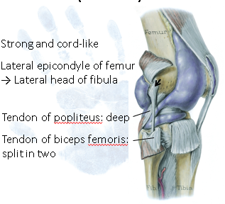 Encloses intercondylar fossa of femur, and is oen posterior to the lateral condyle of the tibia for the popliteus muscle