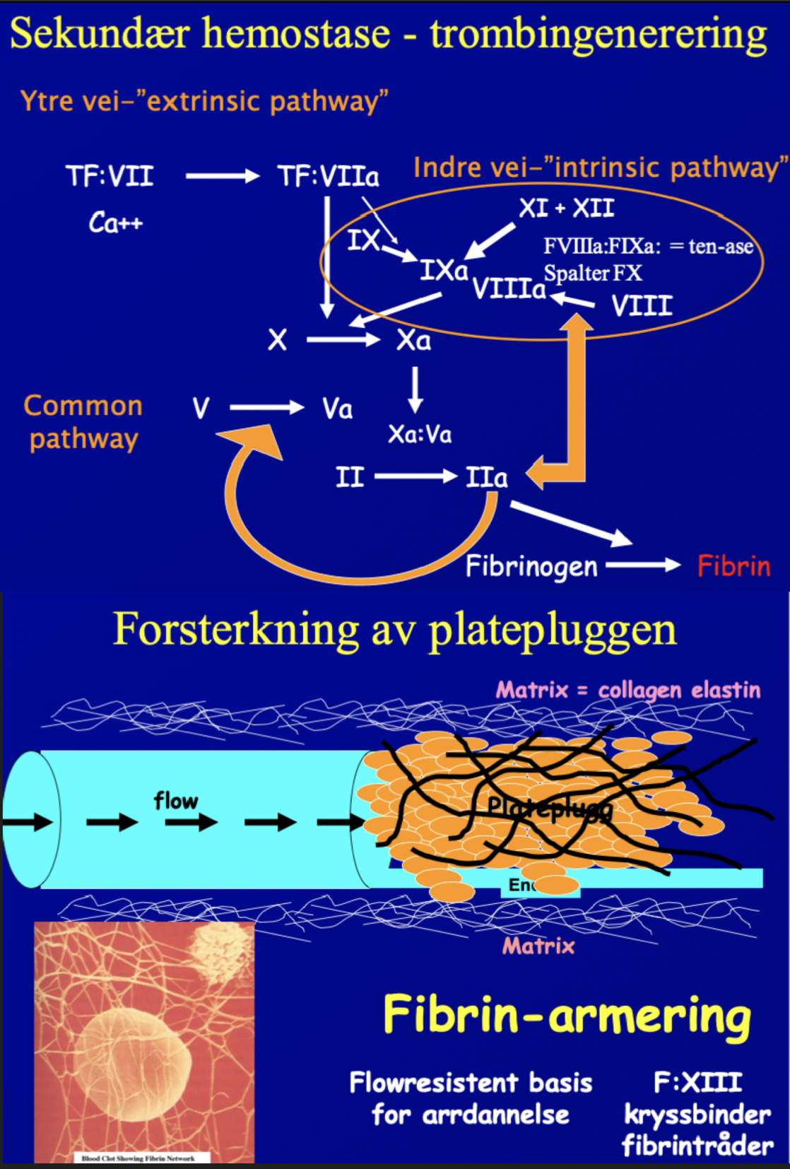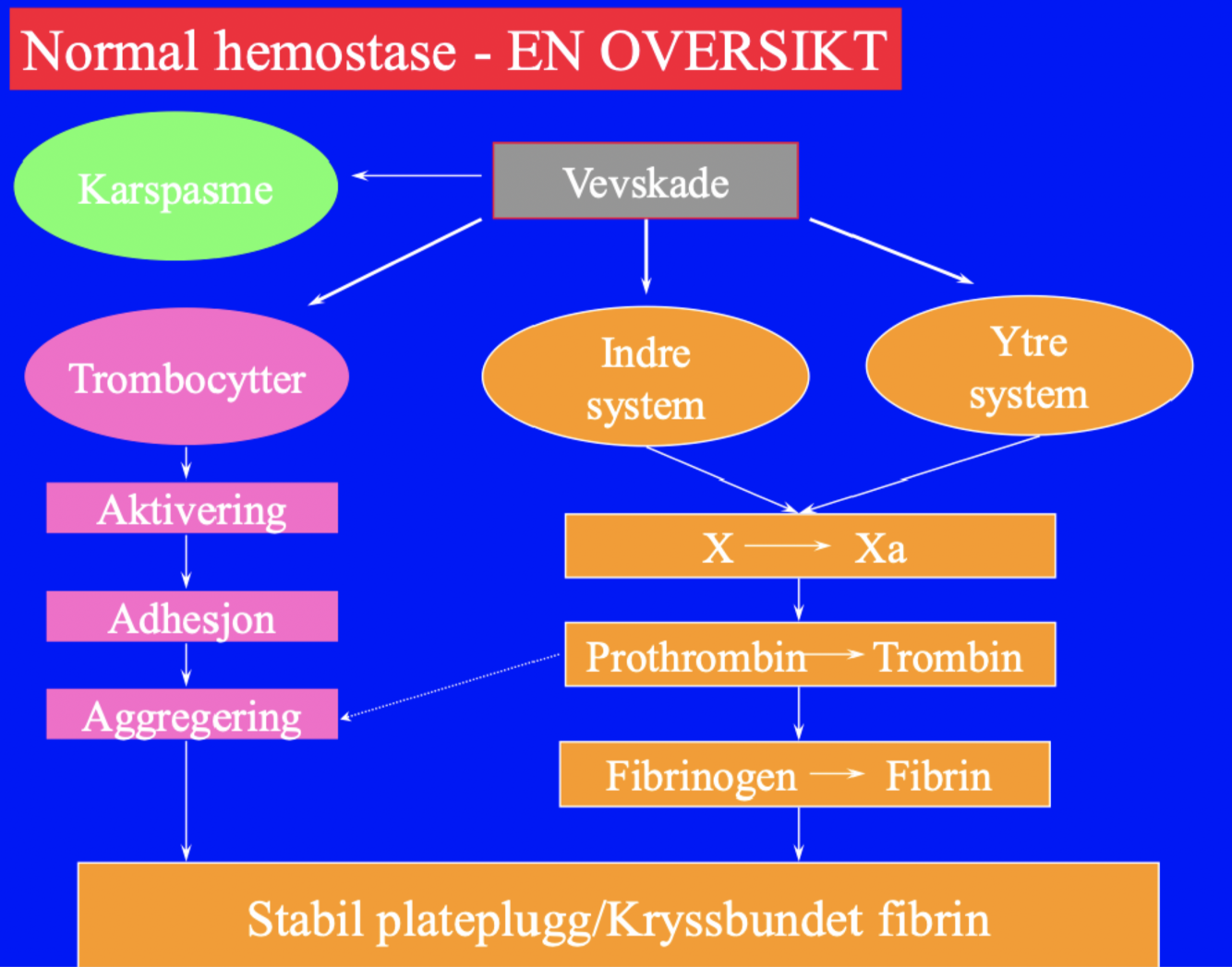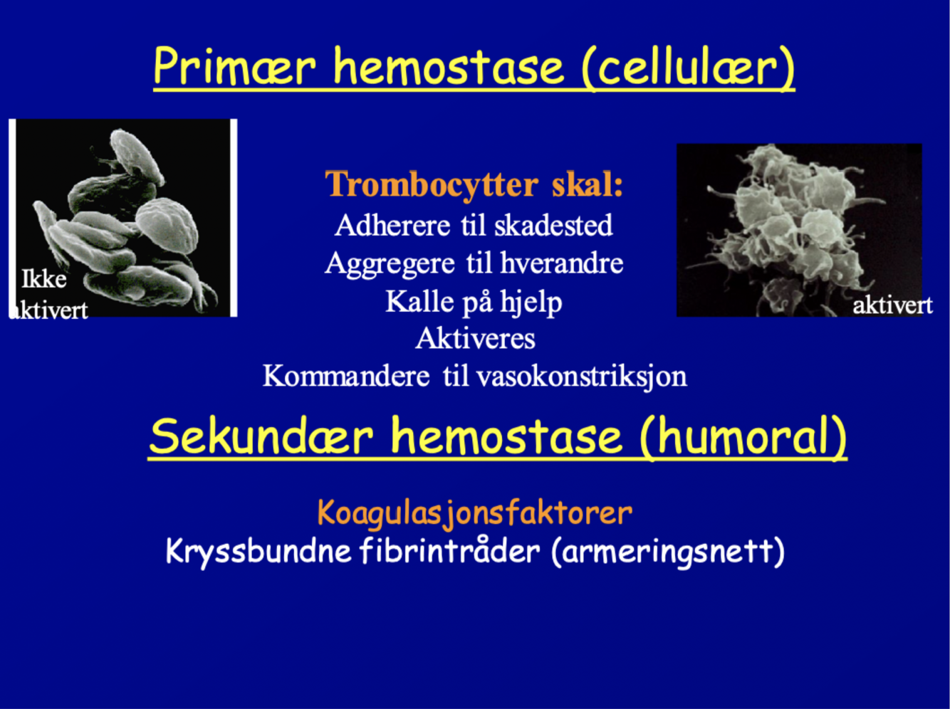 Hvilke er de ulike faktorene ved primær og sekundær hemostase?