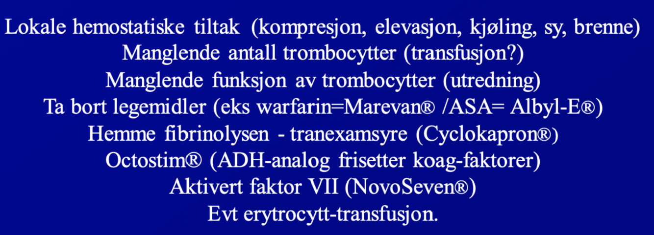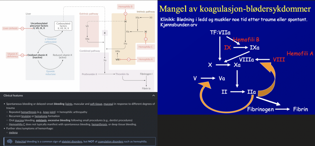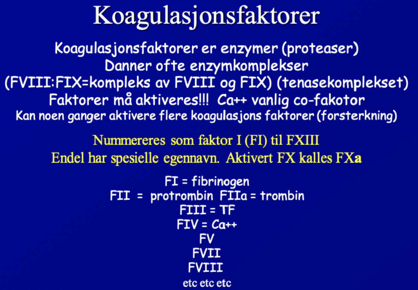 Hvilke er de ulike faktorene ved primær og sekundær hemostase?