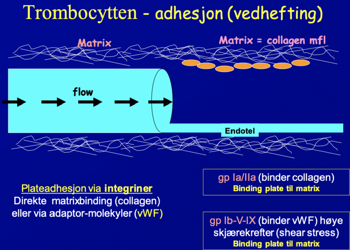 Hvordan foregår trombocyttens adhesjon ved karskade?