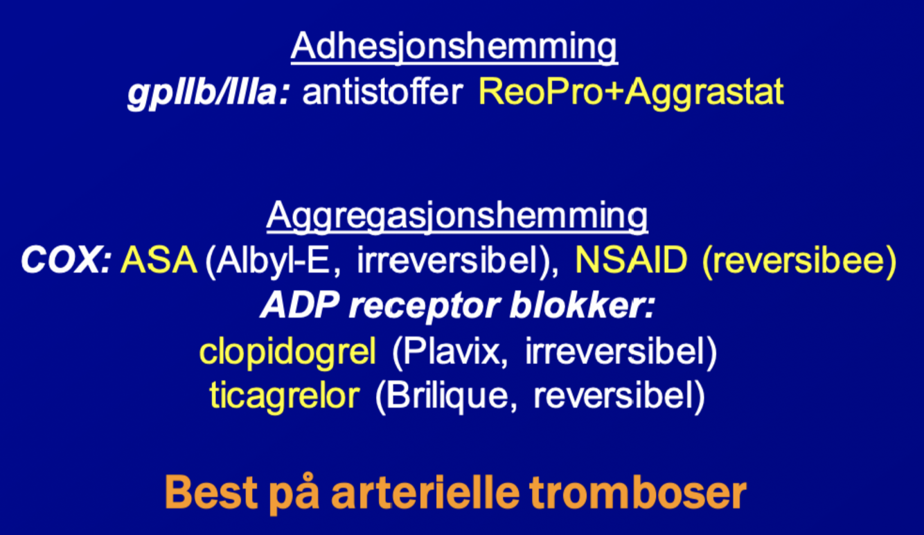 Hvilke midler har man tilgjengelig som kan hemme trombocytten?