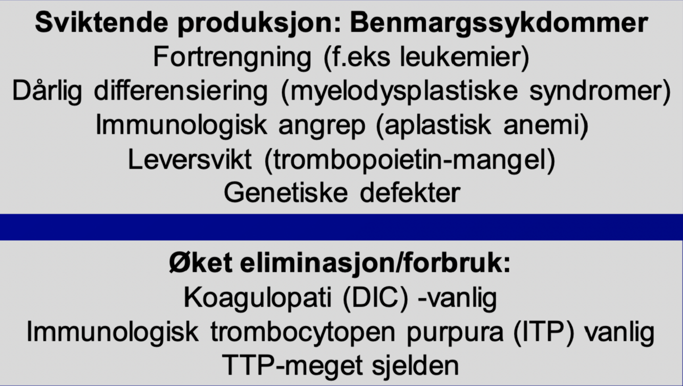 Hvilke typer trombocyttgranulerende celler skiller man mellom?