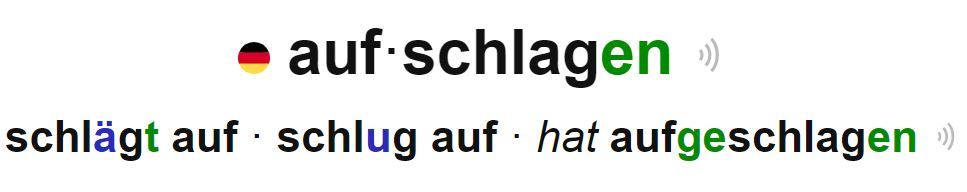 aufschlagen • aufgeschlagen