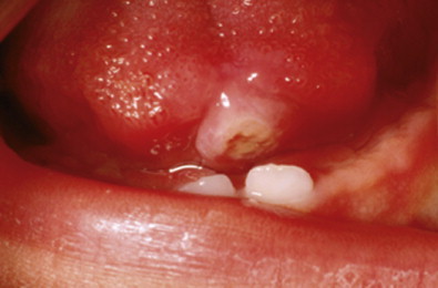 Riga-Fede Disease; benign ulcerative granulomatous condition at avg of 12 months due to chronic repetitive trauma of oral mucosa by teeth. Referral to NEURO warranted if doesn’t resolve because can have underlying developmental delay / neurologic disorder