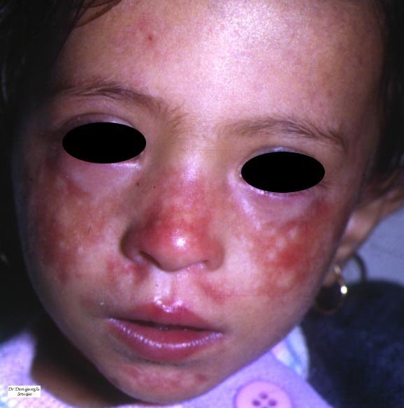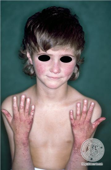 Features: poikiloderma of cheeks/forearms/hands/buttocks; sparse hair, hypoplastic nails, short statute, skeletal/dental anomalies, cataracts, chronic N/V, pituitary hypogonadism