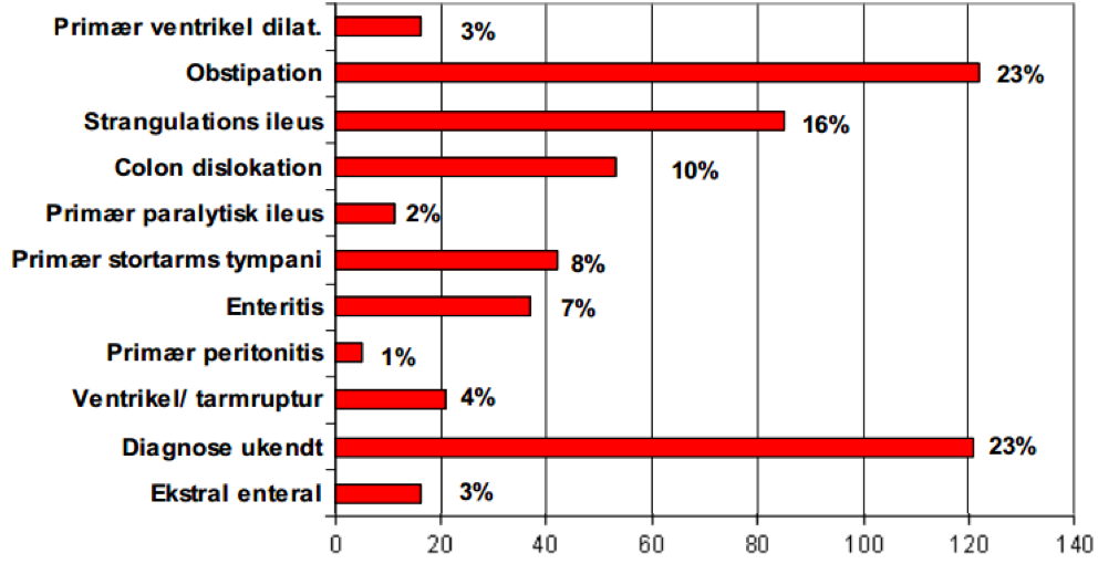 Coprostase er hvis der er en anden tilstand der påvirker tarmene til at gå i stå, og så ophobes fæces/bolus i tarmen.