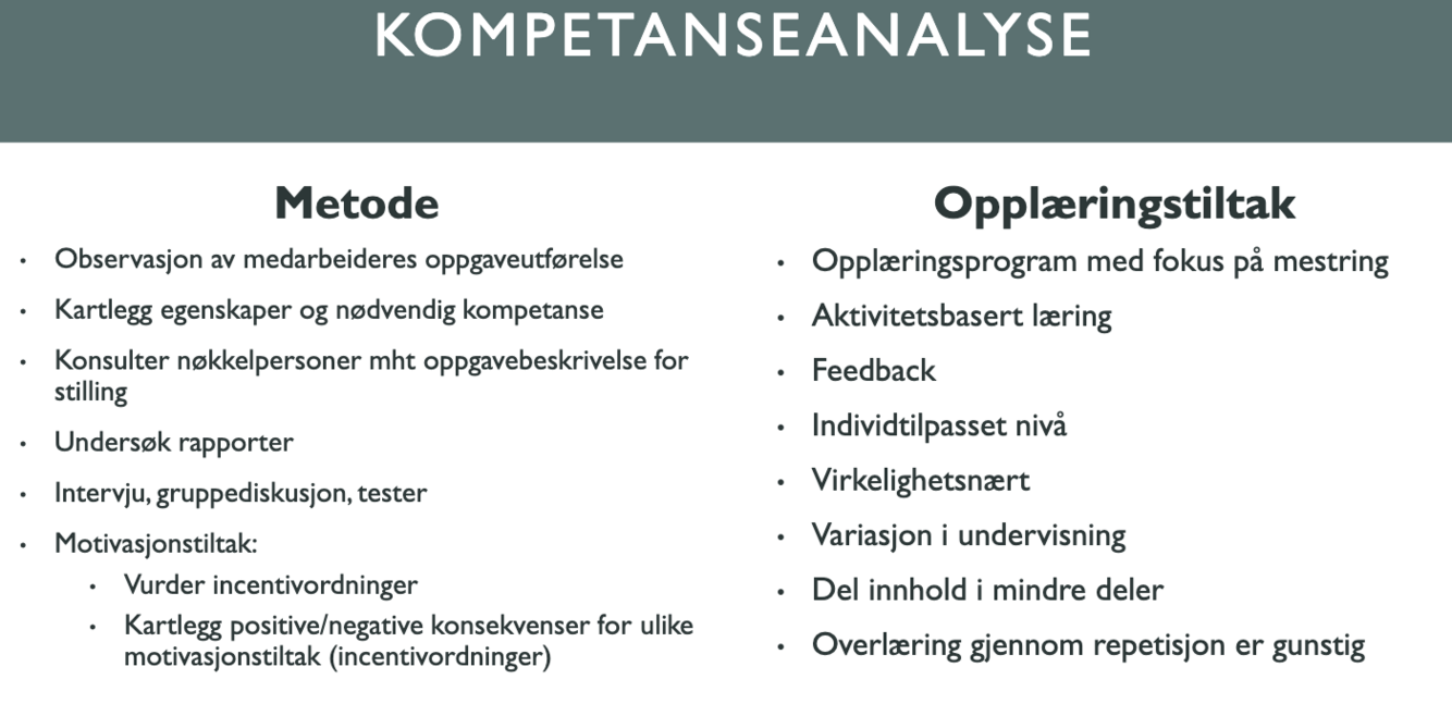 3. Beslutninger om metoder for å fylle kompetansebehovet: motivasjon, opplæring, eller ansettelse.