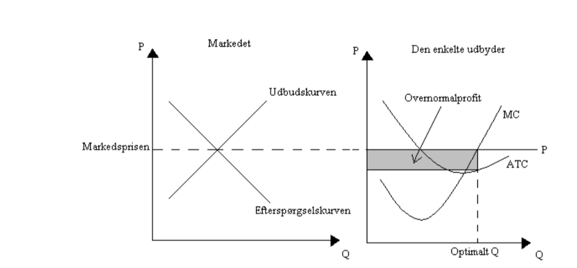 Fuldkommen konkurrence på kort sigt. Tegn marked, virksomhed samt MC og ATC