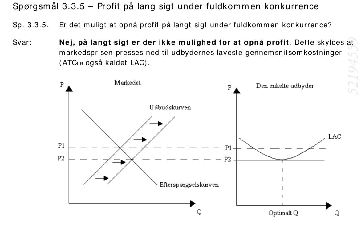 Fuldkommen konkurrence på langsigt. Marked, virksomhed, optimering, funktion, profit mm.