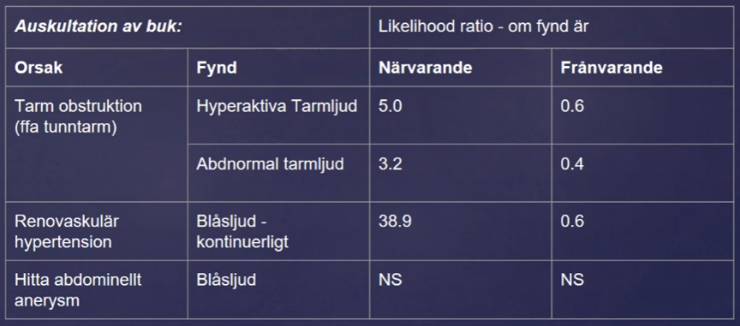 Orsak till frånvaro av tarmljud (minst fem minuter)?
