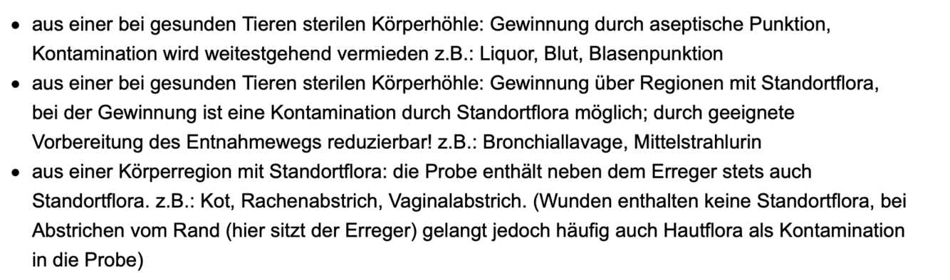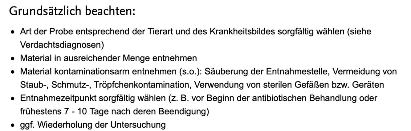 Was spllte man bei der Probengewinnung grundsätzlich beachten?