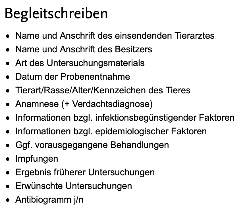 Was muss auf dem Begleidschreiben einer Probe stehen?