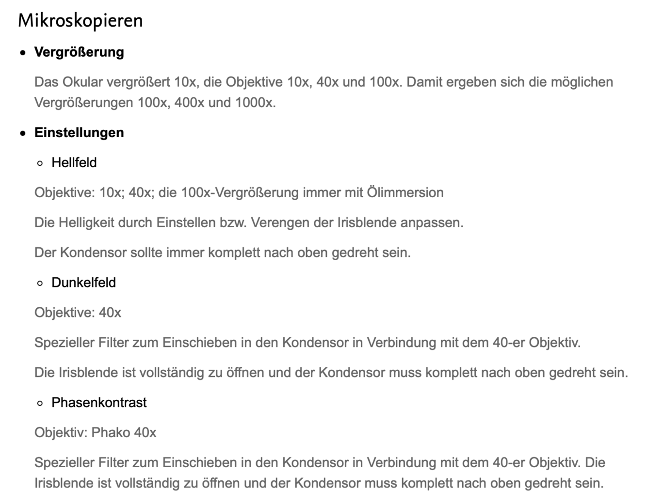 Was kann man beim Mikroskopieren zu den Vergrößerungen und den Einstellungen sagen?