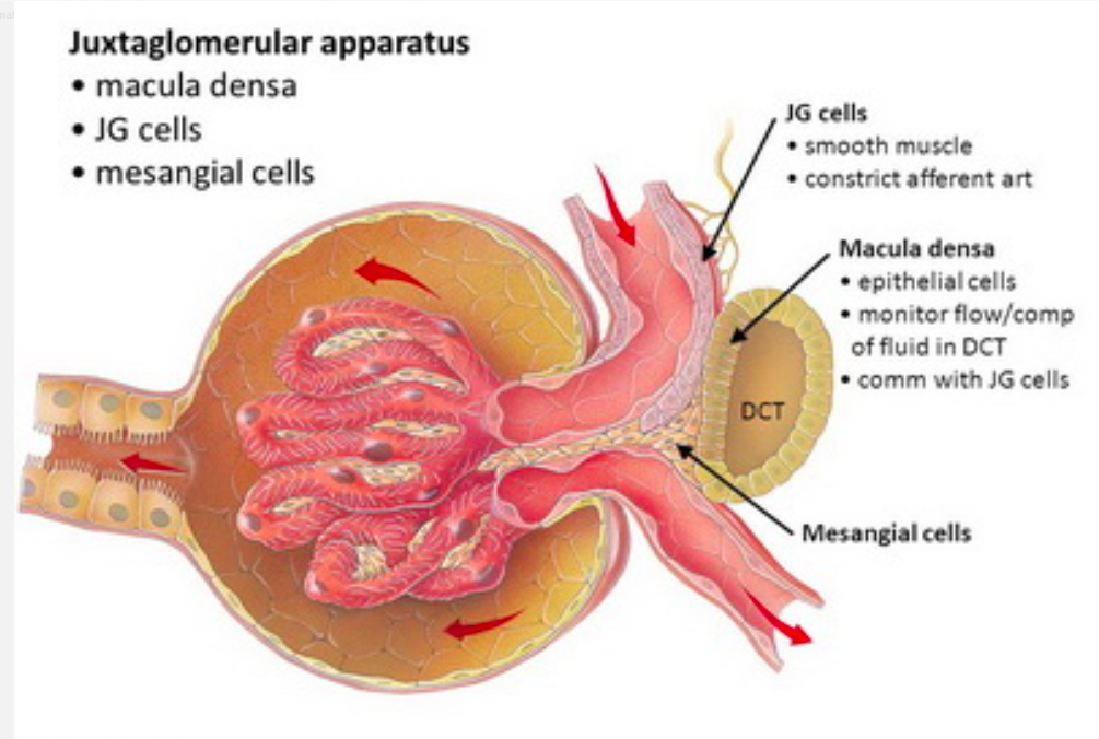 which two systems does the juxtaglomerular apparatus of the distal tubule of the kidney control?