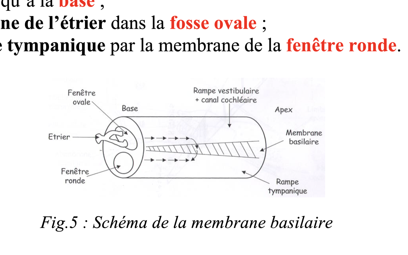 Ø La membrane Basilaire : rampe tympanique /canal cochléaire ;