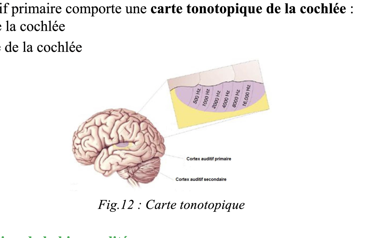Ainsi le cortex auditif primaire comporte une carte tonotopique de la cochlée :