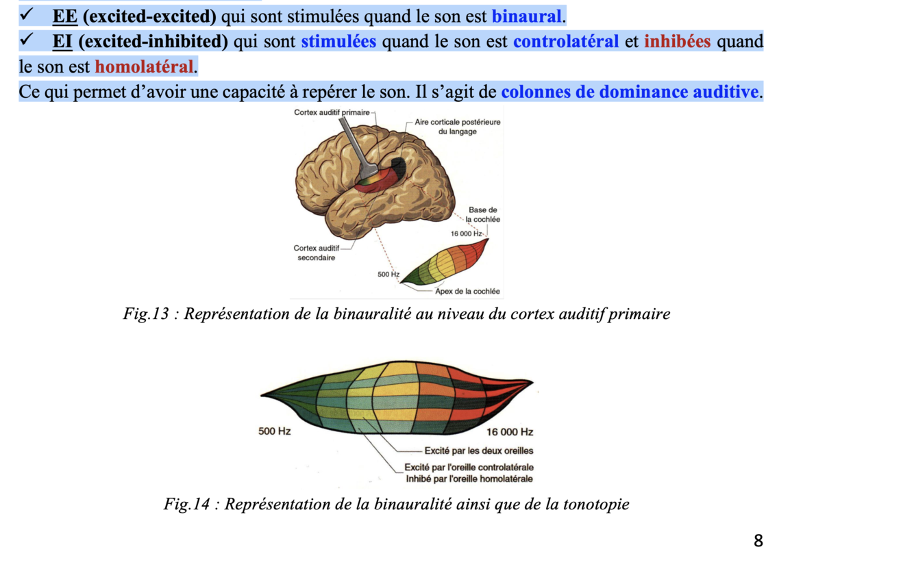 Ce qui permet d’avoir une capacité à repérer le son. Il s’agit de colonnes de dominance auditive.