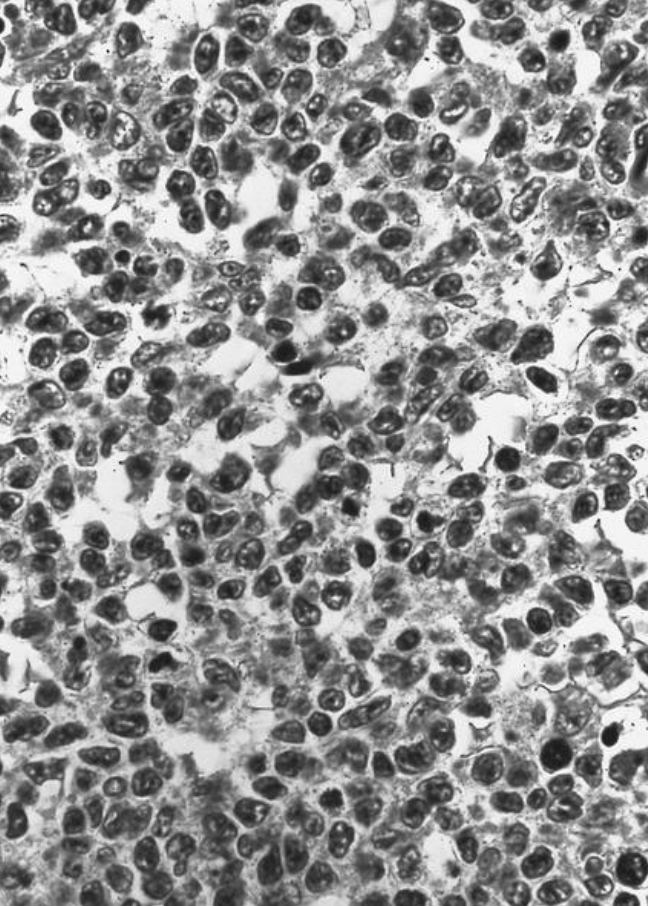 -mostly precursor B cell lymphoblasts in bone and marrow