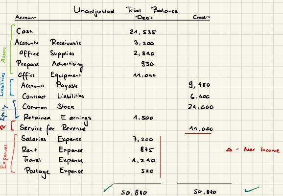 How is the order of accounts for an unadjusted trial balance typically organized? (5)