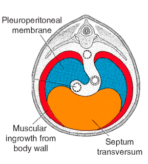 Septum transversum, pleuroperitoneal membrane and muscular ingrowth from para-axial mesoderm together forms the diaphragm