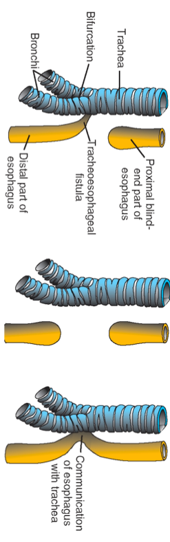 Cause: Failure of the tracheo- esophageal septum to divide the ventral and dorsal portions