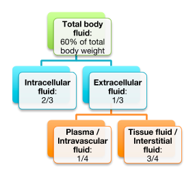 What is the predominant cation in interstitial fluid? State its total body stores.
