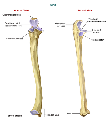 Name the following landmarks on the proximal portion of the ulna: