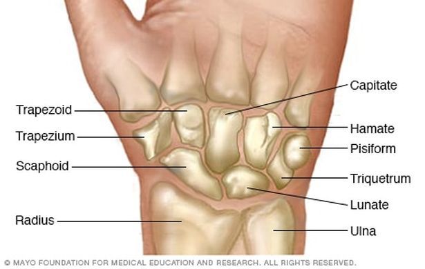 Name the eight carpal bones.