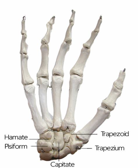 Scaphoid, lunate, triquetrum, pisiform, hamate, capitate, trapezoid, trapezium