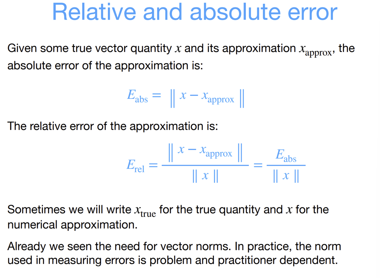 What are the relative and absolute error approximate formulas?