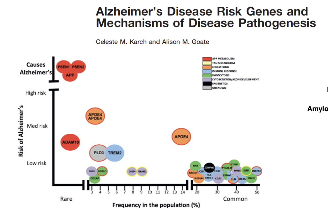 Nobody reallhy knows what causes alzheimers to happen - but there are certain causative genes (EOA) and certain risk factor genes
